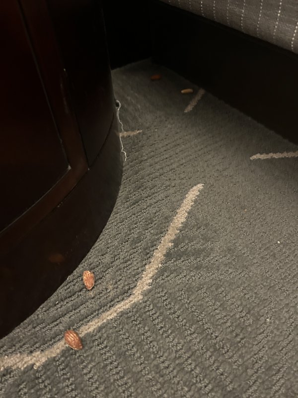 I took this picture with my iPhone so I could show the women at the front desk. So not only is the rug clearly not vacuumed but there are four (four!) almonds just chilling on the rug. Like what? Why? I could overlook the rug not getting a thorough vacuuming but the almonds? Really? Come on, man. Luckily the woman at the front desk was really nice about it and immediately switched me to another room. That incident aside, the hotel was great and the location was very convenient. It was right across the street from a mini mall that had places to eat such as the Cheesecake Factory (I had never been there before and the salted caramel cheesecake I had was amazing!) and you could walk out a back door to the harbor and look at all the boats. There were also tons of other places to eat no more than two or three blocks away.